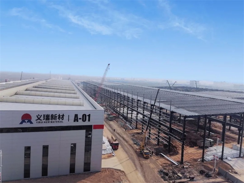 施工車輛穿梭奔忙,一跨跨車間正在拔節(jié)生長……義瑞新材的項目建設(shè)正在加速推進(jìn)。